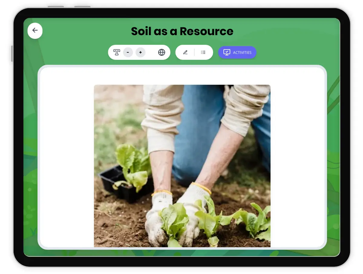 This comprehensive 400-word reading passage teaches fifth-grade students about soil as a critical natural resource. Aligned with NGSS standard 5-ESS3-1, the passage explains how soil supports plant growth, filters water, and provides habitats for organisms. Students discover that healthy soil takes hundreds of years to form through the breakdown of rocks and organic matter, yet can be damaged quickly through overfarming, pollution, and erosion. The passage uses age-appropriate language and real-world examples to help students understand soil conservation and sustainable farming practices. Audio-integrated features support diverse learners, while differentiated versions ensure accessibility for all reading levels. The passage includes bold vocabulary terms with immediate definitions, helping students build science literacy. Supplementary activities include multiple-choice questions testing recall and comprehension, writing prompts requiring application of concepts, and graphic organizers for visual learning. This resource prepares students for hands-on investigations and classroom discussions about protecting Earth's natural resources.