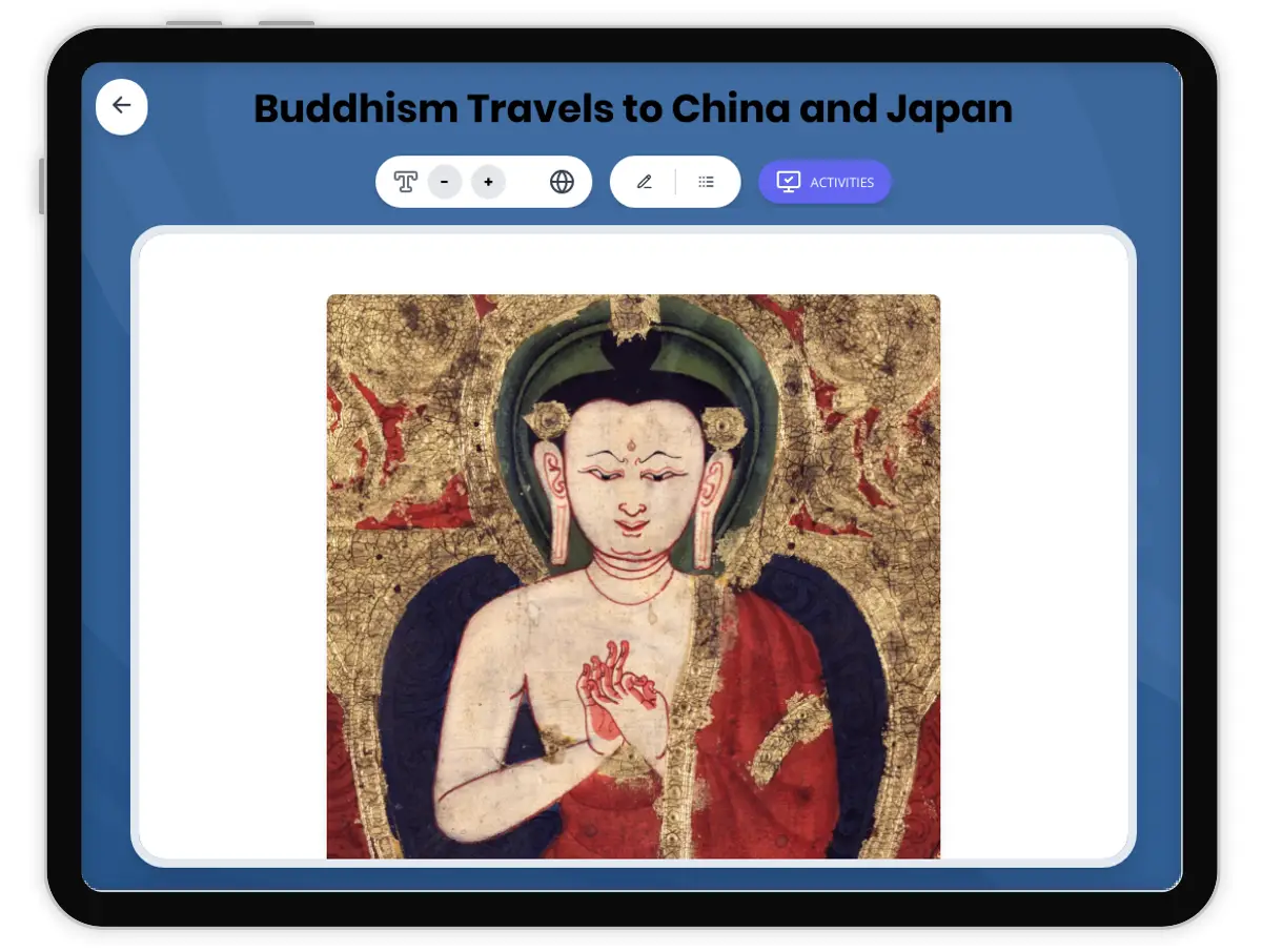 This passage, suitable for middle school students, explores the journey of Buddhism from its origins in ancient India to its spread across China and Japan. Students will learn about the Silk Road, the role of missionaries and monks, and how Buddhism influenced art, society, and culture in East Asia. The reading includes key vocabulary, a timeline, Spanish translation, and aligned activities that build historical thinking and literacy skills. This history reading passage supports CA HSS 6.1.3 and CCSS RI.6.3, and offers read aloud audio and a Spanish translation for enhanced learning. Students will analyze cause and effect, trace changes over time, and use evidence to understand the significance of Buddhism's expansion.