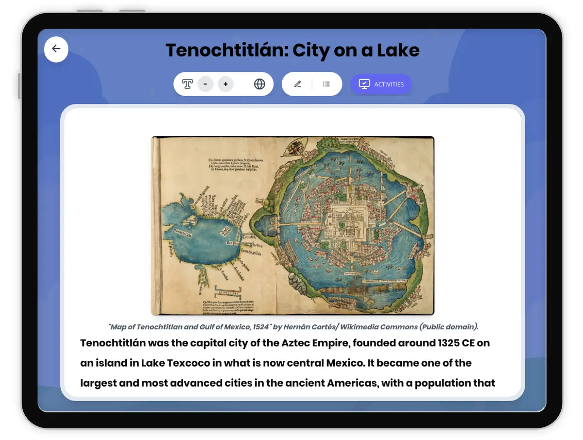 Tenochtitlán: City on a Lake — Reading Comprehension
