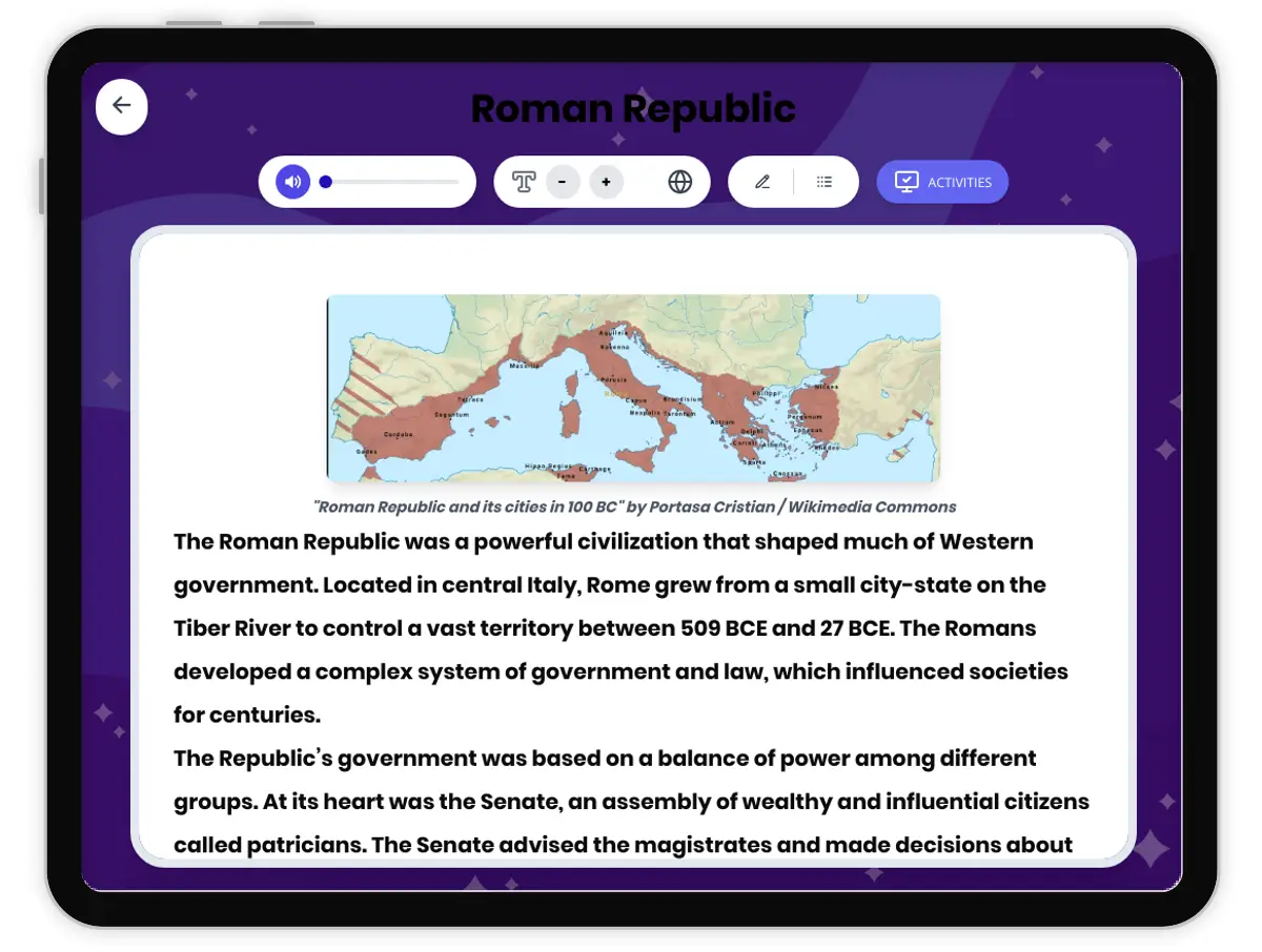 This passage explores the structure and significance of government and law in the Roman Republic, focusing on how Roman citizens and officials shaped the republic's political system. Students will learn about the Senate, consuls, the Twelve Tables, and the influence of geography and social hierarchy in ancient Rome. The passage incorporates evidence from primary and archaeological sources, cause-and-effect relationships, and the long-term impact of Roman law on later civilizations. Aligned to CA HSS 6.7 and CCSS RI.6.3, this resource includes a glossary, multiple-choice and writing activities, graphic organizers, and a Spanish translation. The passage is designed for middle school students and supports history and ELA standards, providing opportunities for critical analysis, vocabulary development, and historical thinking. Read aloud audio is available for accessibility.