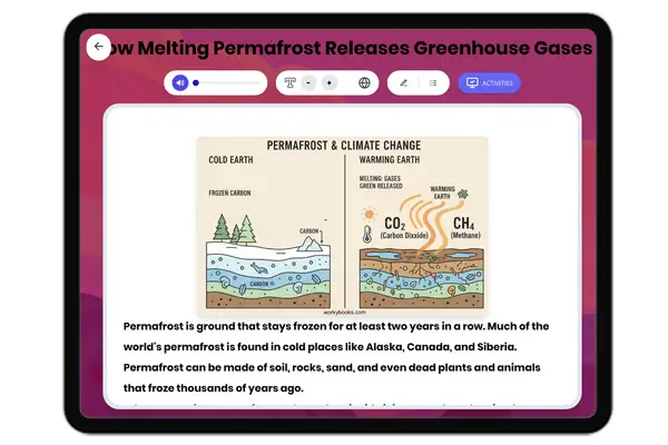 This engaging science passage for grades 6-8 explores the vital role that transportation plays in climate change. Students will learn how vehicles like cars, trucks, ships, and airplanes contribute to greenhouse gas emissions and increase the Earth's temperature. The passage introduces key concepts such as fossil fuels, carbon dioxide, and global warming, with vocabulary highlighted for easy understanding. Real-world examples show how transportation affects our planet and what we can do to help. The content aligns with NGSS standards and encourages critical thinking through quizzes and writing activities. Audio integration supports diverse learners. This resource is perfect for science classrooms looking for accessible, standards-based content on environmental science, climate change, and human impact.