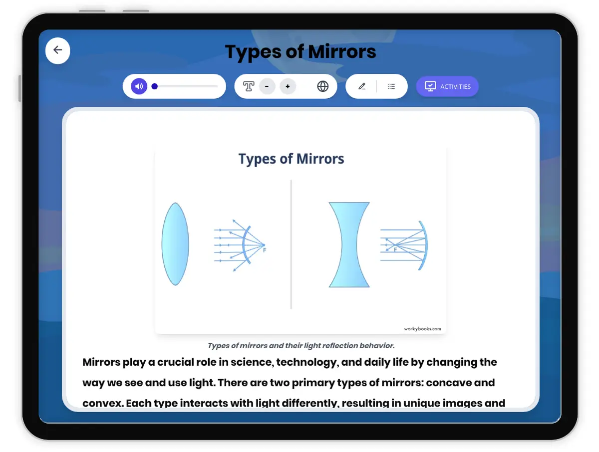 This comprehensive passage introduces middle school students to the science of mirrors, focusing on the mechanisms and applications of concave and convex mirrors. Aligned with NGSS MS-PS4-2, it explores how mirrors interact with light, the differences between real and virtual images, and explains the underlying cause-and-effect chains in mirror systems. Students will learn about real-world uses of mirrors in technology, safety, and daily life, supported by multiple examples and scientific reasoning. The passage includes a glossary for key terms, a simplified version for differentiated instruction, and a Spanish translation. Activities include a multiple-choice quiz, writing prompts, and graphic organizers to reinforce understanding and develop critical thinking skills. Audio integration is available for accessibility, making this resource ideal for diverse classrooms aiming to build foundational knowledge in optics and physical science.