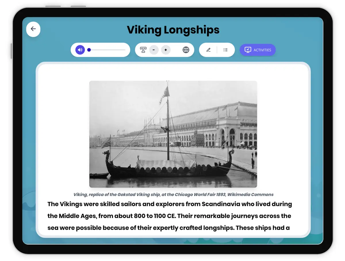 This engaging history reading passage focuses on the remarkable Viking ships and their role in Norse exploration during the Middle Ages. Students will discover how the innovative design of the Viking longship enabled the Norse to travel vast distances, from Scandinavia to Iceland, Greenland, and even North America around 1000 CE. The passage details archaeological findings, such as the Oseberg ship, and explains the social and economic effects of Viking trade routes extending to Constantinople. Designed for middle school students, this resource includes a glossary of academic vocabulary, a Spanish translation, and a simplified version for differentiated instruction. Activities include a multiple-choice quiz, writing prompts, graphic organizers, and a timeline, all aligned with CA HSS 7.1 and CCSS RH.6-8.1 standards. Audio read aloud and visual supports enhance accessibility.