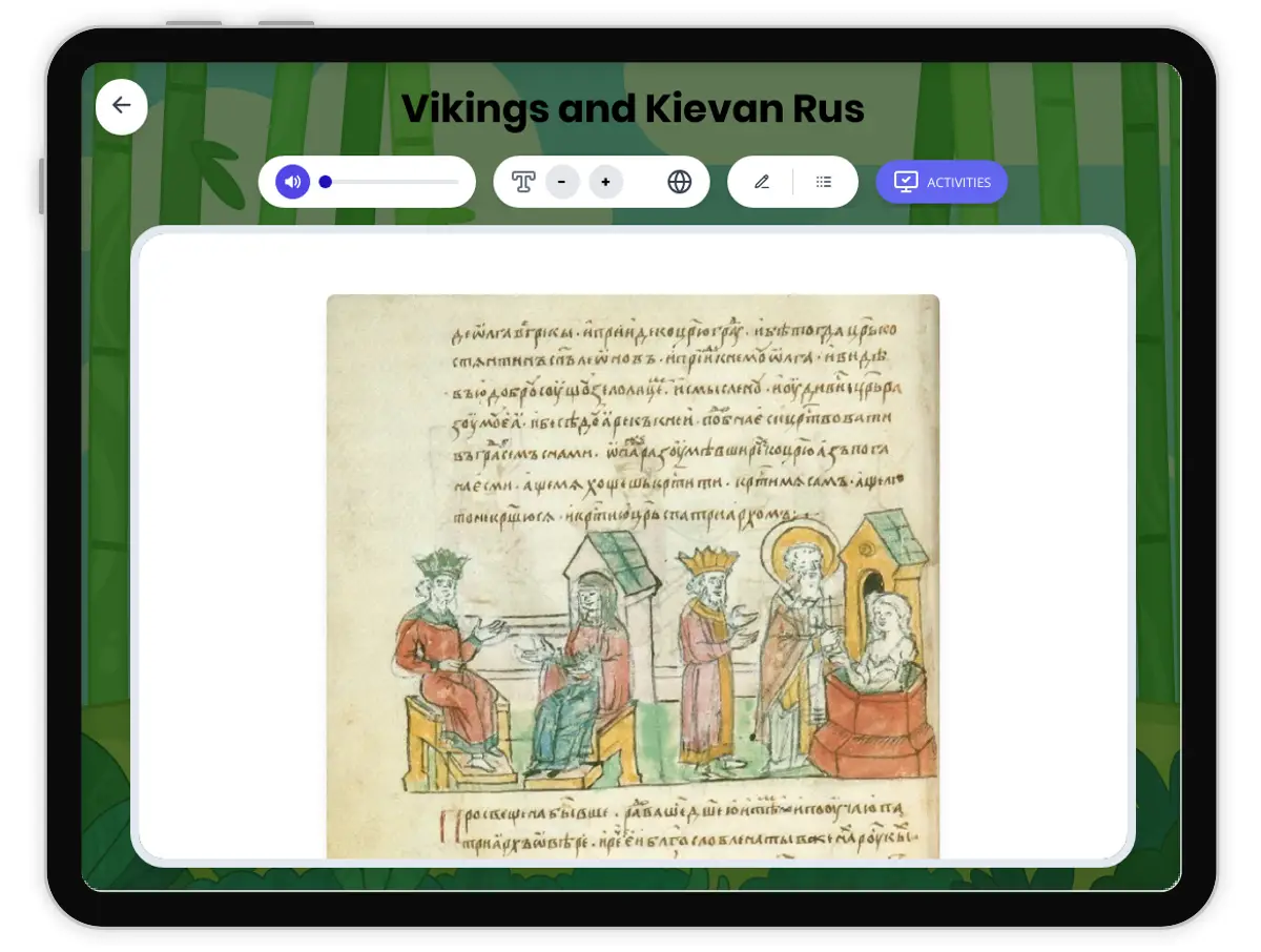 This world history reading passage explores the founding of the Kievan Rus state by Swedish Vikings, known as the Rus, during the Middle Ages. Students will learn how the Vikings navigated Russian rivers, interacted with Slavic peoples, and built a new society that shaped Russian and Eastern European history. The passage includes primary and archaeological evidence, cause-and-effect relationships, and connections to geography, culture, and social hierarchy. Activities include a glossary, multiple-choice quiz, writing prompts, graphic organizers, and a timeline. The resource features a Spanish translation and read-aloud audio, making it accessible for diverse learners. This passage aligns with CA HSS 7.1.1 and CCSS RI.6-8.1, supporting inquiry and critical thinking about early civilizations, migration, and the formation of states in world history.