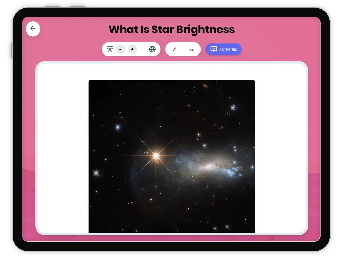 This comprehensive 400-word reading passage helps Grade 5 students understand star brightness as outlined in NGSS standard 5-ESS1-1. Students explore how brightness refers to the amount of light we see from a star when observing it from Earth, and why some stars appear very bright while others look dim. The passage uses age-appropriate language and relatable analogies to explain how scientists measure and compare star brightness. Audio-integrated features support diverse learners, while the simplified differentiated version ensures accessibility for students reading below grade level. Complete with Spanish translations of both versions, a comprehensive glossary, multiple-choice quiz, writing activities, and graphic organizers, this resource provides everything teachers need to introduce foundational astronomy concepts. Students learn that brightness can be observed, measured, and compared, setting the stage for deeper investigations into factors affecting how bright stars appear from Earth. The passage aligns perfectly with NGSS Disciplinary Core Ideas and prepares students for hands-on activities and scientific discussions about stars and space.