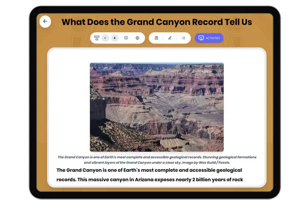 This comprehensive middle school science passage explores the geologic time scale and how scientists use it to organize Earth's 4.6-billion-year history. Students learn about the collaborative effort to construct this standardized system using rock sequences and fossil evidence through relative dating methods. The passage explains how scientists later calibrated the time scale with absolute ages using radiometric dating techniques. Aligned with NGSS standard MS-ESS1-4, this audio-integrated reading passage helps students understand how geologists read Earth's geological record and organize major geological and biological events into named intervals. The passage includes real-world examples, key scientific vocabulary in context, and connections to how this global scientific effort helps us understand Earth's deep history. Activities reinforce understanding of stratigraphy, dating methods, and the importance of the geologic time scale in Earth science.
