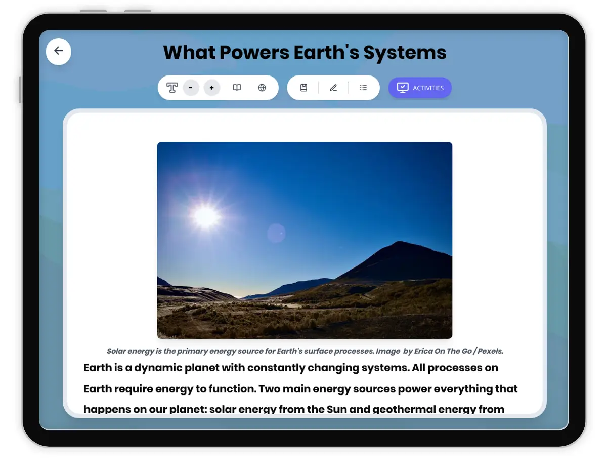 This comprehensive reading passage explores the two fundamental energy sources that power all Earth system processes: solar energy and Earth's internal heat. Aligned with NGSS standard MS-ESS2-1, students learn how solar energy drives weather patterns, ocean currents, and the water cycle, while Earth's internal heat powers volcanic activity, earthquakes, and tectonic plate movement. The passage includes clear explanations of convection currents, radiation, and conduction, with real-world examples that help students understand these abstract concepts. Audio-integrated content supports diverse learners, including English Language Learners and students with reading difficulties. The curriculum includes a simplified differentiated version, Spanish translations, interactive multiple-choice questions, writing activities, and graphic organizers that reinforce understanding of energy transfer and Earth system processes. This resource provides educators with standards-aligned materials that develop scientific literacy and critical thinking skills essential for middle school science education.