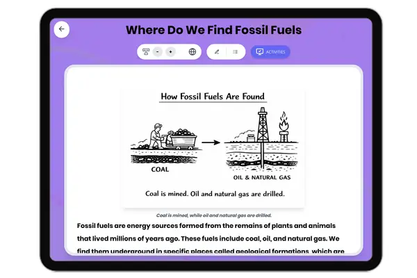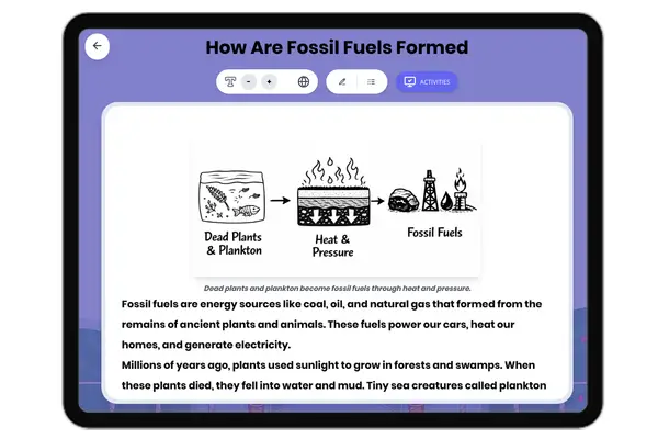 This 250-word reading passage introduces fourth-grade students to the formation of fossil fuels, aligned with NGSS stand...