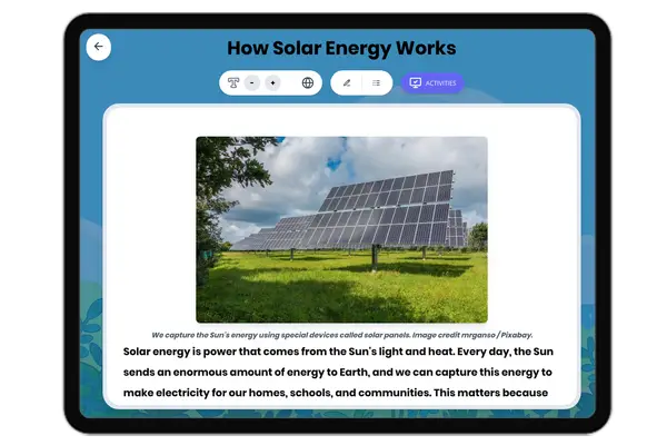 This engaging 250-word science passage explains how solar energy works for Grade 4-5 students. The reading explores how ...