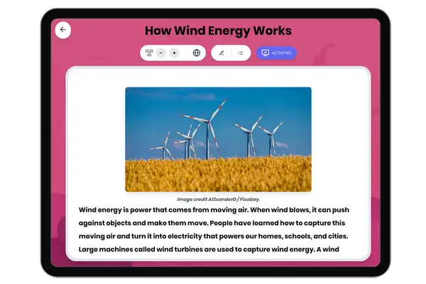 This 250-word reading passage introduces fourth-grade students to wind energy and how it works, aligned with NGSS standa...