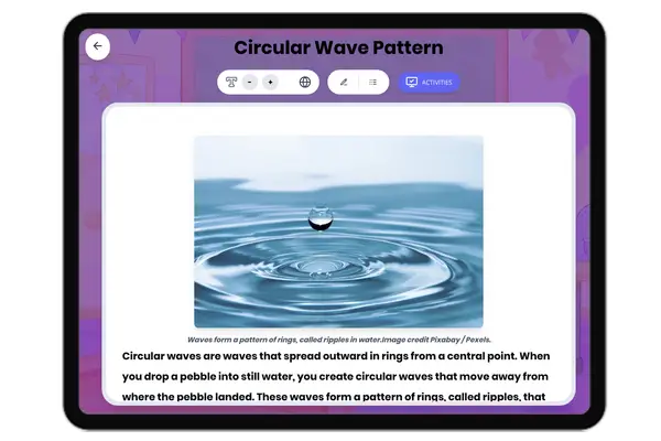 This engaging 250-word science passage introduces Grade 4-5 students to circular wave patterns and how they behave in na...
