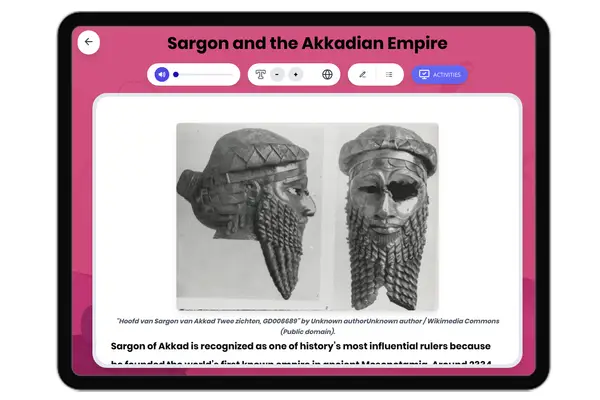 This engaging history reading passage explores the life and legacy of Sargon of Akkad, the founder of the world's first ...