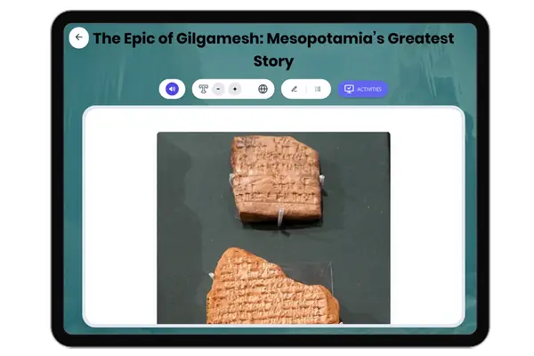 This engaging passage delves into The Epic of Gilgamesh, the oldest known epic poem and a key artifact from ancient Meso...
