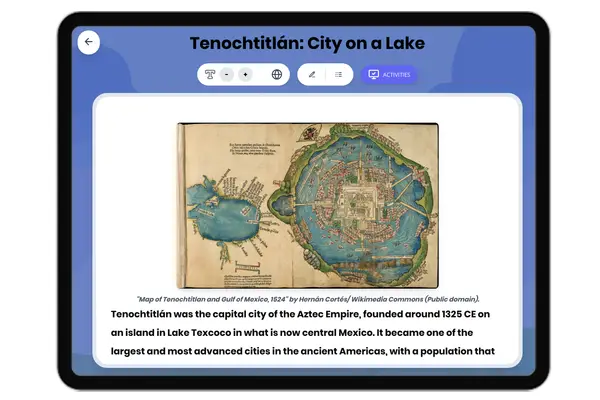 This comprehensive history reading passage explores the rise and significance of Tenochtitlán, the capital of the Aztec ...