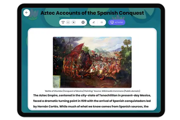 This reading passage explores the Aztec accounts of the Spanish Conquest, focusing on primary sources and indigenous per...