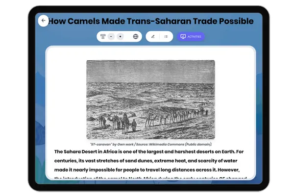 This detailed passage explores the revolutionary impact of camels on trans-Saharan trade in ancient West Africa. Student...