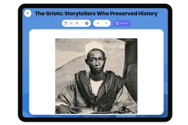 This engaging passage introduces students to the griots of West Africa, who played a crucial role in preserving history ...
