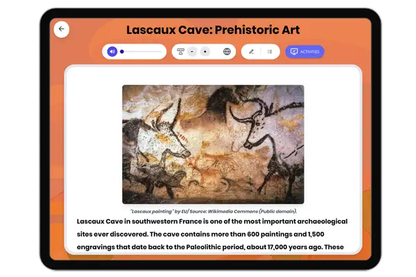 This engaging passage introduces students to the prehistoric art of Lascaux Cave, a remarkable archaeological discovery ...