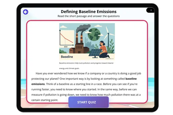 This educational passage, audio integrated for diverse learners, explores the crucial concept of 'Defining Baseline Emis...