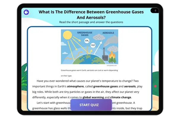 This educational passage, audio integrated, for Grade 6 students delves into the critical differences between greenhouse...