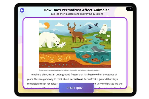 This engaging, NGSS-aligned science passage for grades 6-8 explores how melting permafrost releases greenhouse gases, im...