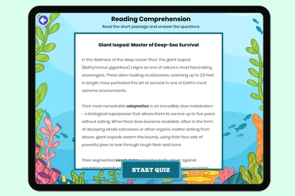 Aligned to NGSS, this passage explores Dumbo octopus adaptations like ear-like fins for swimming at 3,000-13,000 ft dept...