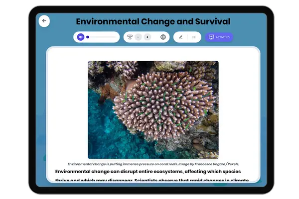 This middle school science passage explores how environmental changes, such as climate change, habitat destruction, the ...