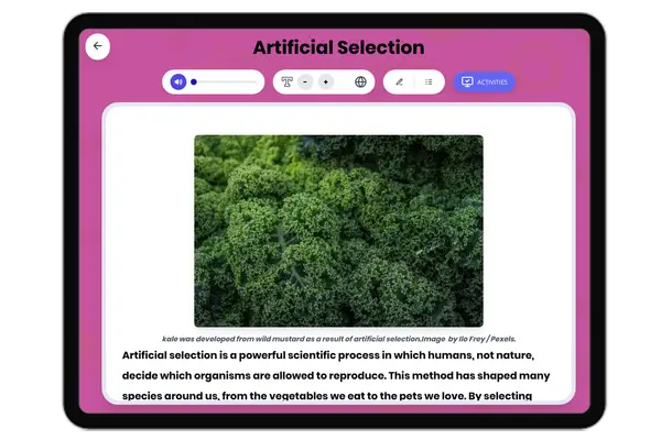 This passage explores the science of artificial selection for middle school students, aligning with NGSS standard MS-LS4...