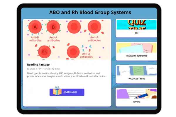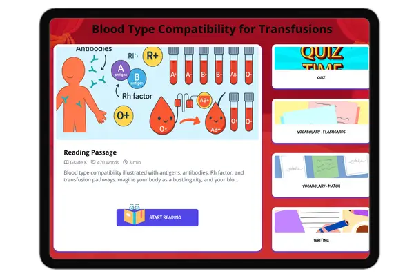 This engaging and audio-integrated reading passage, 'Blood Type Compatibility for Transfusions,' introduces sixth-grade ...