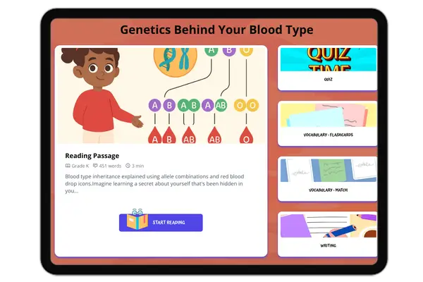 Dive into the intriguing world of human genetics with this audio-integrated reading passage, "Genetics Behind Your Blood...