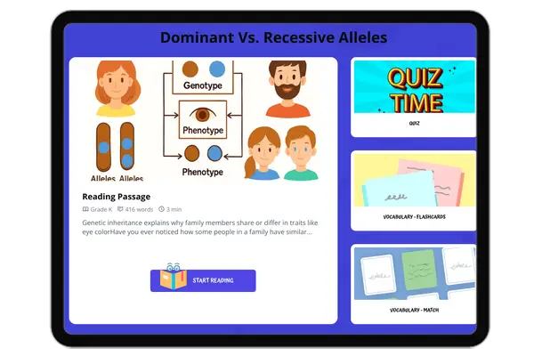 This NGSS-aligned passage introduces middle school readers to alleles—different versions of a gene. It explains how alle...