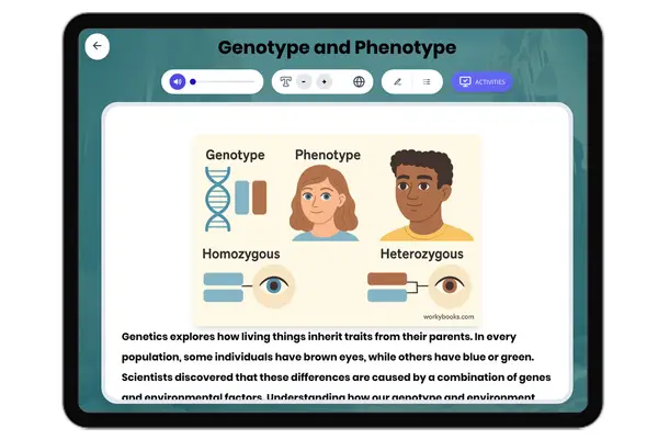 This comprehensive middle school science passage explores the relationship between genotype and phenotype, aligning with...