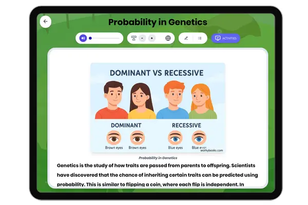 This passage introduces middle school students to the connection between genetics and probability, aligning with NGSS st...