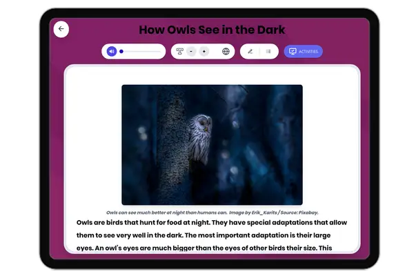 This science passage, designed for grades 4-5 and aligned with NGSS standards, explores how owls see in the dark. Studen...