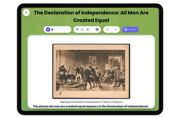 This reading passage explores the meaning, context, and contradictions of the famous phrase "All men are created equal" ...