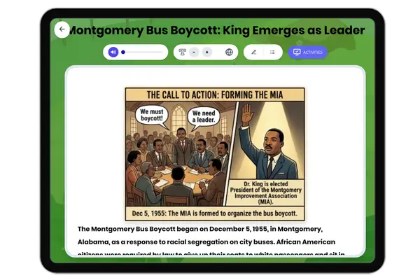 This U.S. History reading passage explores the Montgomery Bus Boycott, a pivotal event in the Civil Rights Movement, and...
