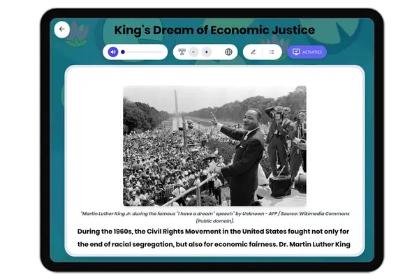 This engaging U.S. history reading passage explores Martin Luther King Jr.'s vision for economic justice during the Civi...