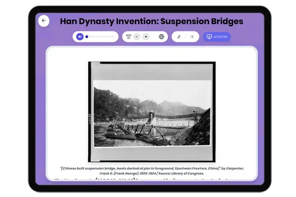 This passage explores the invention and impact of suspension bridges during the Han Dynasty in Ancient China, covering h...