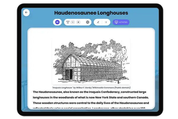 This passage examines the Haudenosaunee (Iroquois) longhouse as a key invention and cultural symbol, exploring its role ...