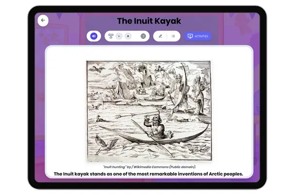 This passage examines the history and significance of the Inuit kayak, an advanced invention developed by Arctic peoples...