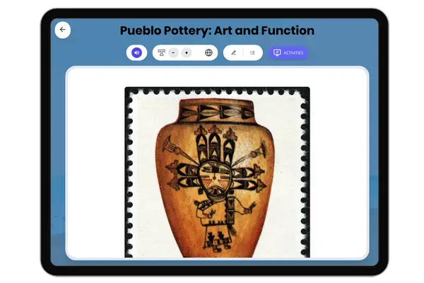 This passage introduces students to the history and significance of Pueblo pottery, a tradition developed by Southwester...