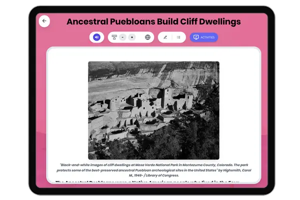 This engaging history reading passage explores the Ancestral Puebloans' cliff dwellings built between 1190 and 1300 CE i...