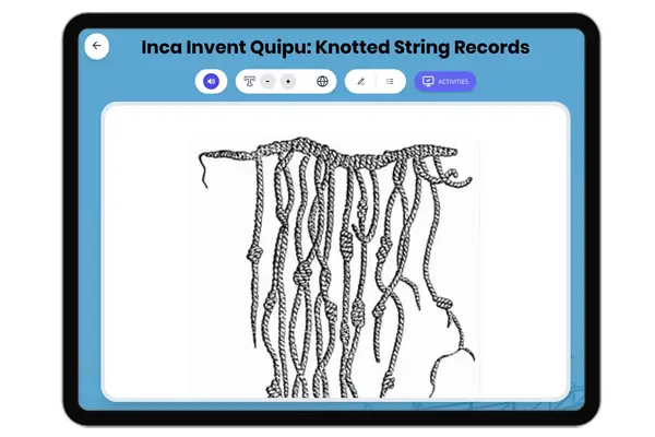 This passage explores the innovative record-keeping system of the Inca Empire, focusing on the quipu—a tool made of colo...