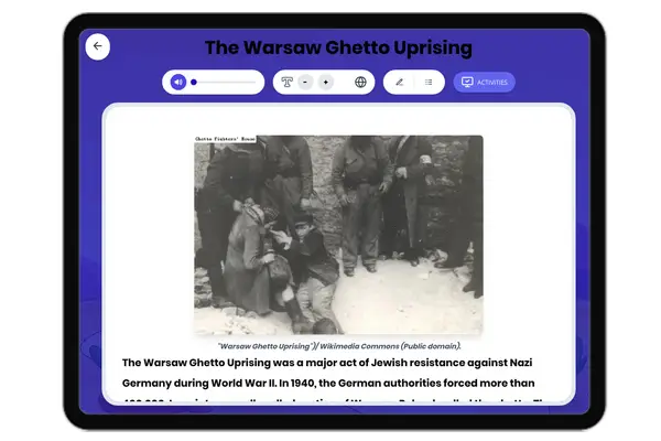 This rigorous history reading passage explores the Warsaw Ghetto Uprising, a critical event during the Holocaust and Wor...