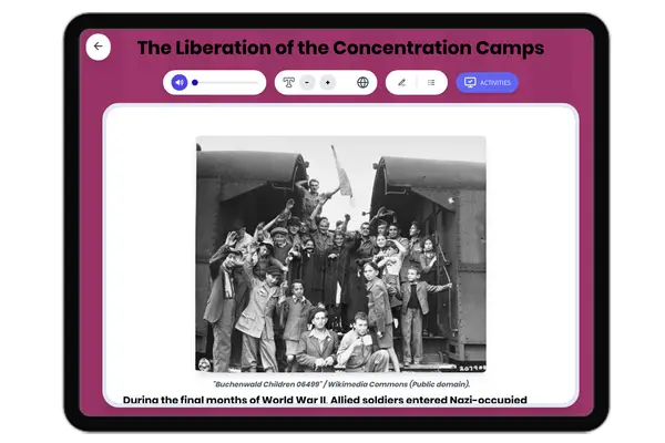This comprehensive world history reading passage examines the liberation of the concentration camps at the end of World ...