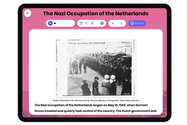 This world history reading passage explores the Nazi occupation of the Netherlands during World War II, focusing on key ...