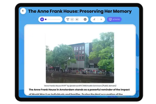 This passage covers the historical significance of the Anne Frank House in Amsterdam during World War II. Students will ...
