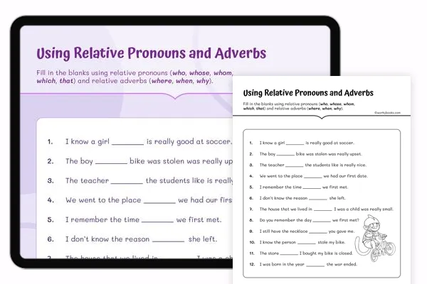 This worksheet on relative pronouns and adverbs is a great way to practice these skills. Students read the sentences and...