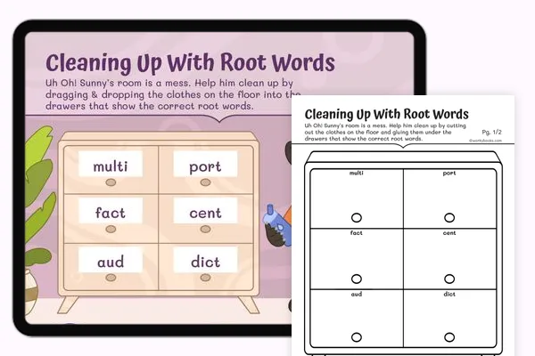 This worksheet is a great way to practice root words. Students will match the words on the clothes to the correcct root ...